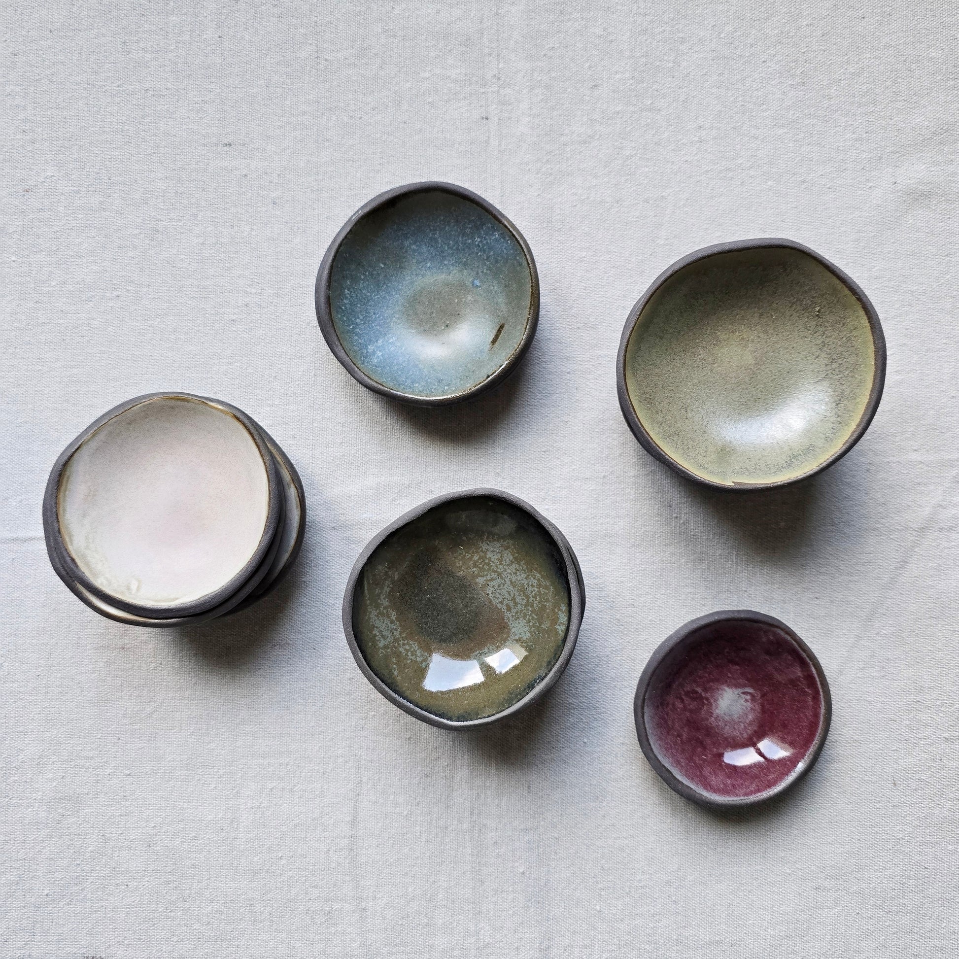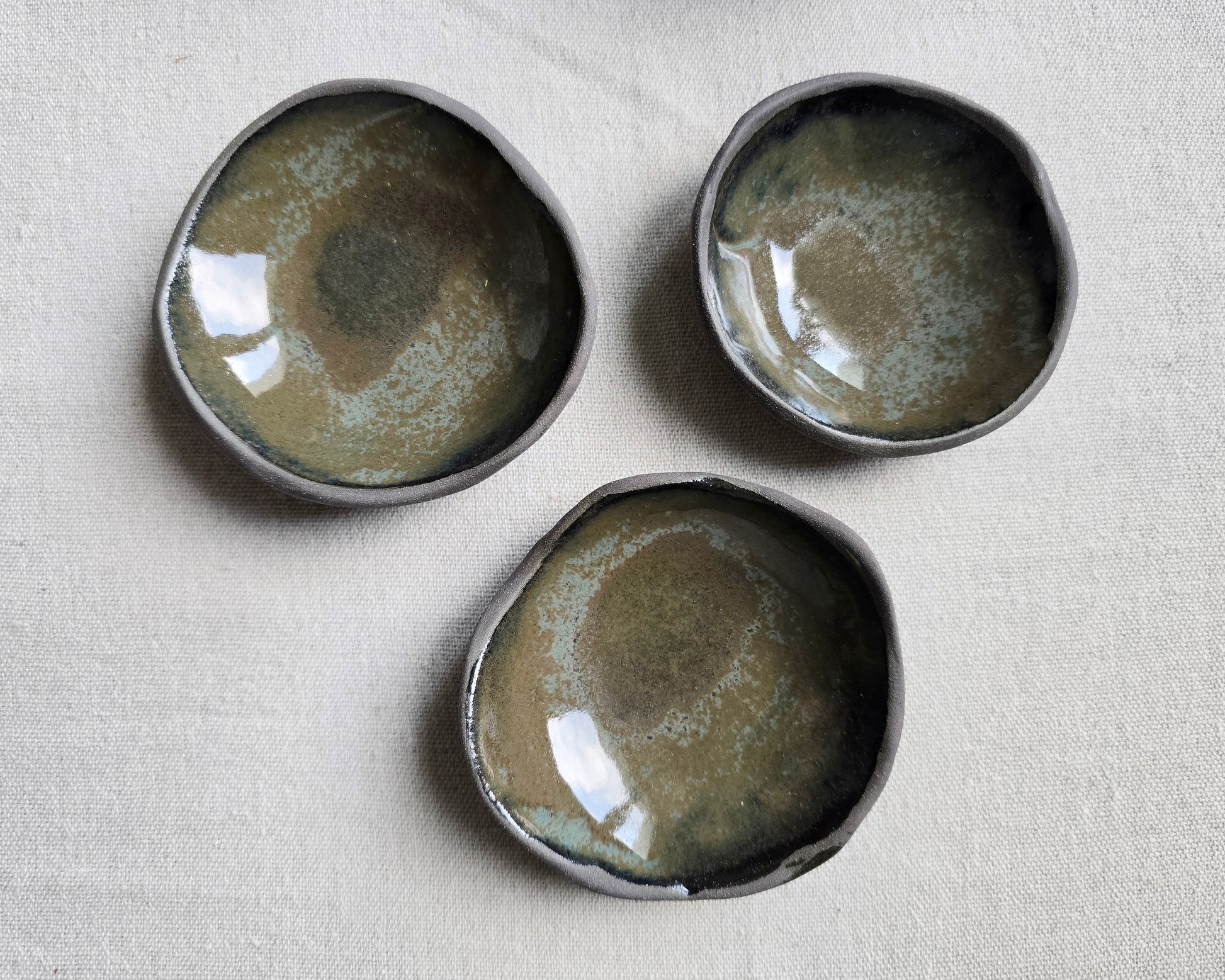 SCRIGNO Mini ciotolina in gres (7–8 cm), perfetta come porta soia, salsine o spezie a tavola, assaggio olio, ma anche come piccolo scrigno per gioielli e oggetti preziosi. Realizzata a mano, ogni pezzo è unico.