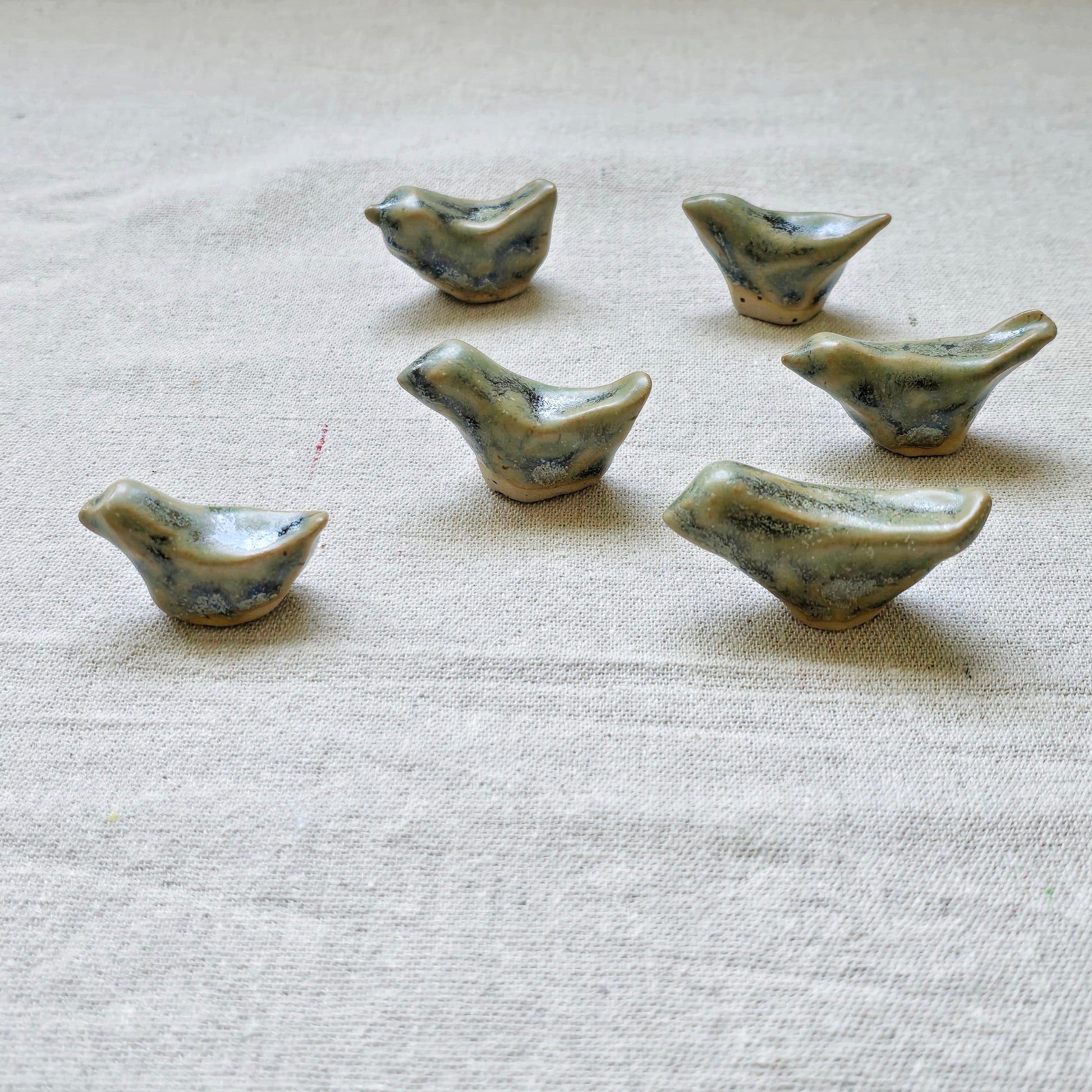 Poggia bacchette UCCELLINO a forma di uccellino in gres puntinato, smaltate in vari colori. Hanno dimensioni di 2x 6cm. Vengono venduti singolarmente o in una confezione da 6 pezzi