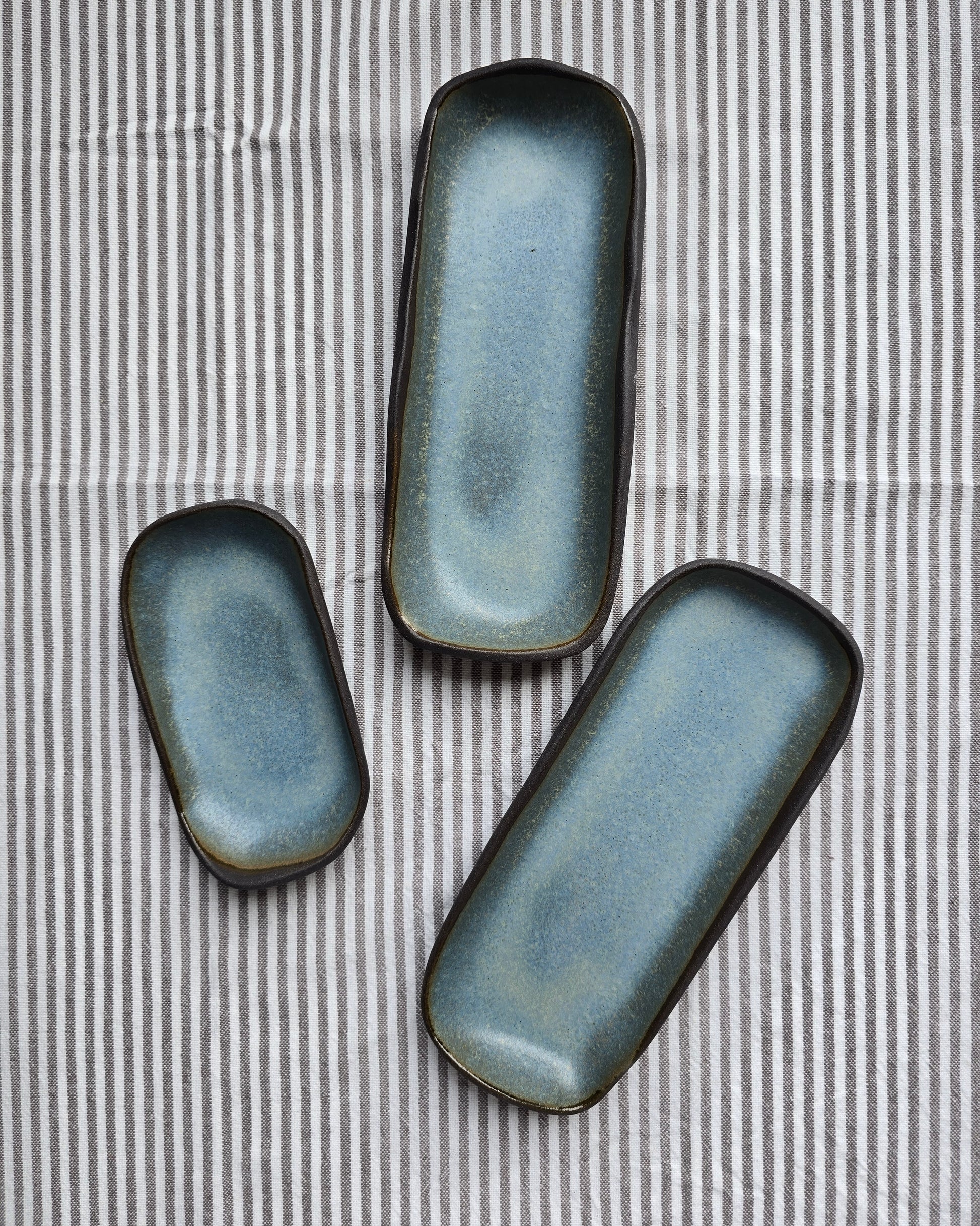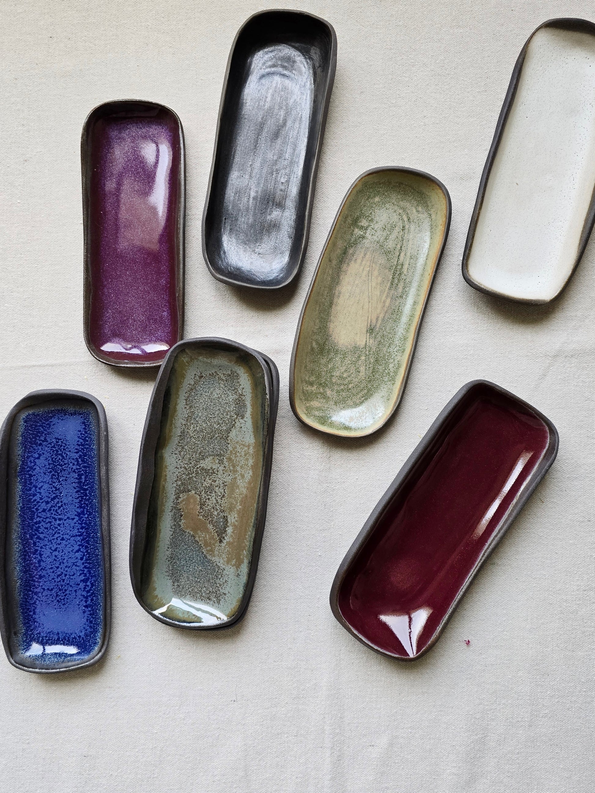 Piattini / Svuotatasche in gres nero di diversi colori di 18 x 7cm.