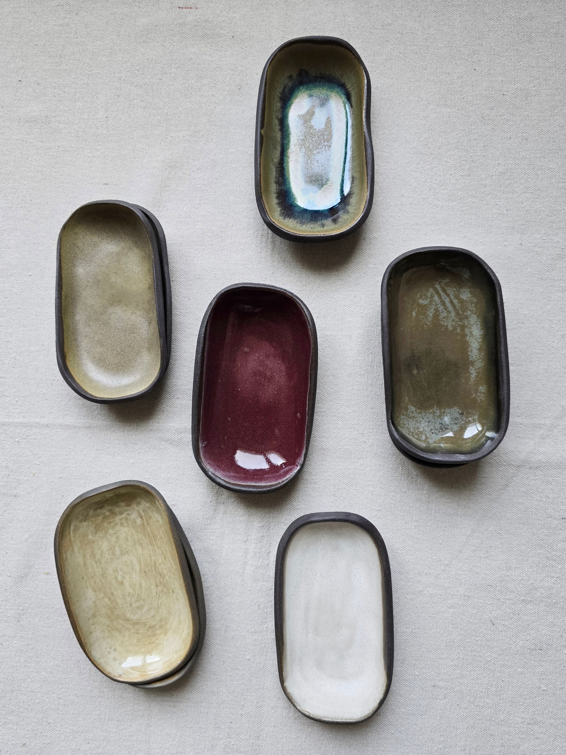 Piattini / Svuotatasche MINI in gres nero di diversi colori di 12,5 x 7,5cm.