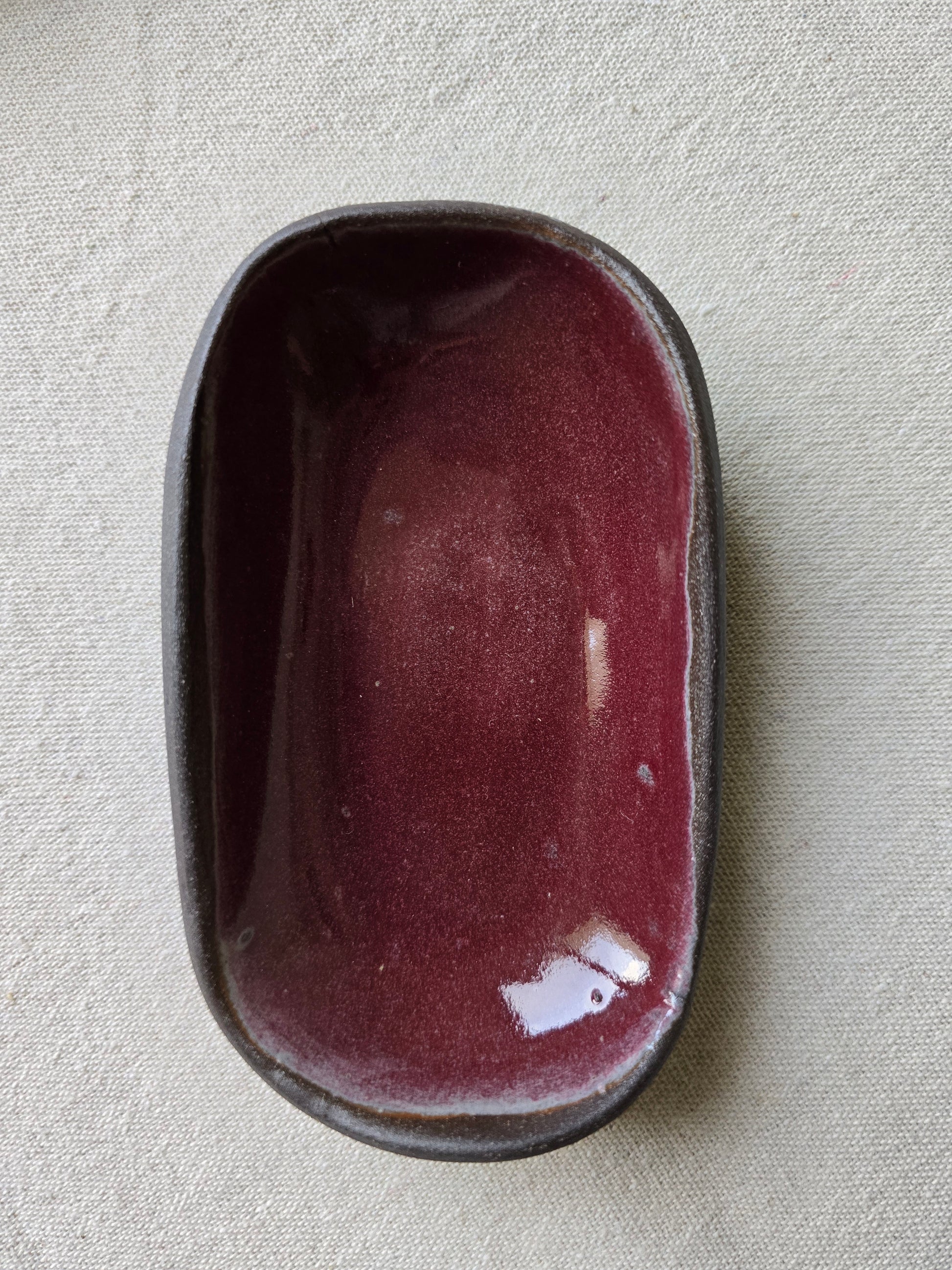 Fatto a mano con la tecnica della lastra con un gres nero, smaltato all'interno e non smaltato all'esterno.